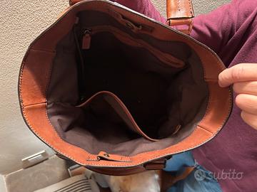 Usata molto poco e mantenuta benissimo. Tracolla e manici. Due tasche unterne di cui una con cerniera. Chiusura con bottone magnetico. Filo con moschettone per assucurare le chiavi. Ottima per il lavoro.