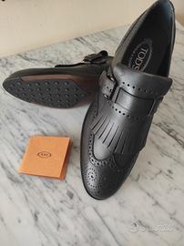 TOD'S Dark green (Gray) fringed brogue monk-strap shoes