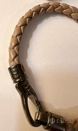 Braccialetti in pella TOD’S originali da uomo. Tutti con chiusura a moschettone. Due hanno doppia lunghezza sul polso, uno di colore grigio e uno nero (41 cm distesi) in pelle intrecciara a sezione rotonda, due con lunghezza 20,5 cm colore uno nero e uno testa di moro in pelle intrecciata piatta e uno di colore beige lungo 23cm con pelle intrecciata a sezione rotonda. Perfetto il loro stato d’uso, nessun difetto da segnalare.