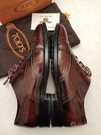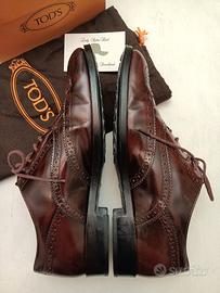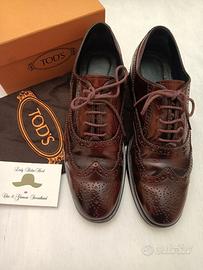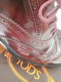 TOD'S SCARPE STRINGATE DONNA OXFORD PELLE SPAZZOLATA BORDEAUX/MOSTO RICAMATA n°36,5