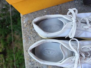 Vendo sneakers Tod’s originali da uomo, in pelle e tessuto bianco, taglia UK 6½ – EU 40 IT.