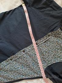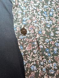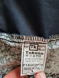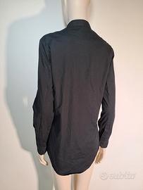Camicia Tokuno Shima in cotone blu scuro e fantasia. Maniche lunghe e abbottonatura in diagonale e taglio asimmetrico. Taglia L large. Usata ma in ottime condizionie senza difetti.