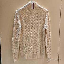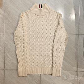 ✨ L'OGGETTO IN BREVE I dolcevita Tommy Hilfiger in color bianco avorio cable knit . Mix di cotone e lana. Logo bandierina ricamato sul polsino. 📏 DETTAGLI & MISURE Brand: Tommy Hilfiger Taglia: M (Uomo) - Vestibilità Regular Materiale: Misto Cotone e Lana Colore: Bianco / Panna Misure precise (in piano): Lunghezza totale: 71 cm Larghezza torace: 51 cm Larghezza spalle: 44 cm Lunghezza manica: 72 cm 🔍 CONDIZIONI Ottime condizioni. 🚚 INFO Spedizione: Veloce e tracciata. Imballaggio protettivo per capi in maglieria. 💲Promo: Seleziona un altro capo dal mio armadio per sbloccare uno sconto esclusivo ⚠️Disponibili altri Maglioni di marca nel profilo #tommyhilfiger #dolcevita #preppy