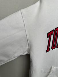 Felpa unisex TOMMY HILFIGER, 100% cotone. Candido colore bianco con patches del logo a contrasto applicati sul davanti. Taglia L.