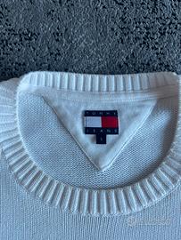 Maglioncino Tommy Hilfiger in perfette condizioni. Pullover girocollo bianco. Dettagli prodotto: Colore: Bianco Taglia: S Scollo: Tondo Polsini: Coste elastiche Trasparenza: Leggera Vestibilità: oversize Linea: Diritta Lunghezza: Lunghezza normale Lunghezza manica: Lunghe Composizione: 100% cotone Avvertenze: Lavaggio a macchina a 30 gradi, lavaggio delicato, non asciugare in asciugatrice.