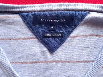 Tommy Hilfiger, morbidissimo pullover a righe orizzontali in cotton cashmere, colore celeste, taglia XL, condizioni semi nuove perchè usato pochissime volte e non utilizzato da tempo, super confortevole, polsini e fondo elasticizzato, scollo a V.