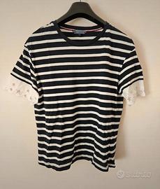 Vendo tshirt Tommy Hilfiger taglia s italiana. Fantasia a righe bianche e blu. Cotone e Lyocell. Leggerissima.Nuova mai usata.