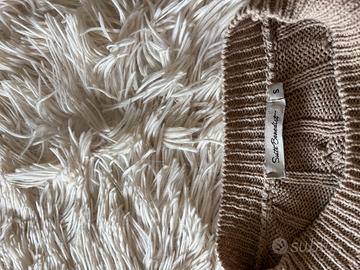 Maglione beige con trecce e maniche lunghe. - Design corto. - Orlo a zig-zag.