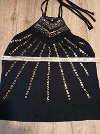 top nero in tessuto maglina con motivo di paillettes sul davanti(mancano soltanto 2- 3 paillettes)