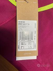 Vendo top tecnico Adidas originale, modello GC8183 DRST ASK P 3S, di colore viola ciclamino con iconiche tre strisce verde lime sui lati.