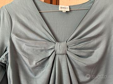 Top a maniche lunghe Armani Collezioni color azzurro polvere mai indossato, scollo a v con fiocco, tagli 40 veste anche 42 95% viscosa. Ritiro a Milano zona Abruzzi Plinio