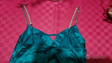 Top Bershaka verde, con spalline in strass, in cotone e poliestere. Usato pochissimo. Taglia XS