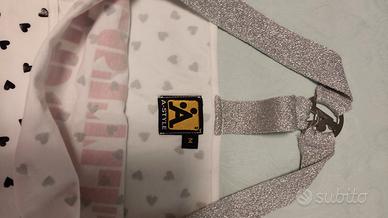 Bellissimo top estivo a tinta unita bianca con stampa di cuoricini neri, scritta in rosso e spalline argentate.