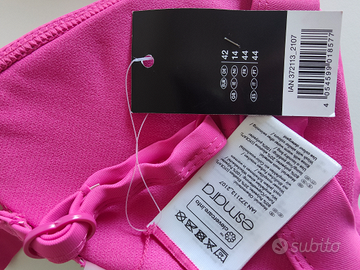 Colore rosa, in lycra con volant. Spalline regolabili, chiusura con semplice gancio regolabile. Nuovo ancora con etichetta. Taglia IT 44, pagato euro 4,99