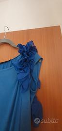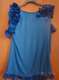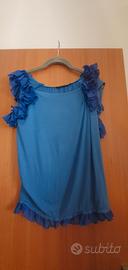 Top blu elettrico con ricche rouches alle spalle e sul fondo. In morbida viscosa. Taglia 42