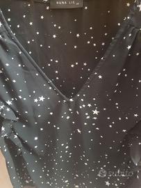 Blusa del marchio moda Nuna Lie con sfondo nero stellato. Taglia XS.