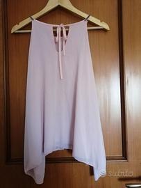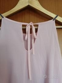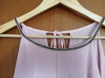 Top-blusa rosa, taglia unica, leggera e comoda con strass sulla scollatura