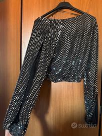 top brillantinato con maniche aperte
