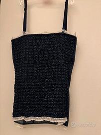 Top bustier in raso blu e pois bianchi e bordure in pizzo bianco. Coppe preformate leggermente imbottite. Misura S-M Intimissimi Perfetto sui jeans