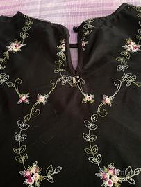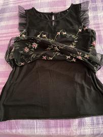 Top Coconuda, senza maniche, nero con stampa floreale e inserto in pizzo. Taglia S