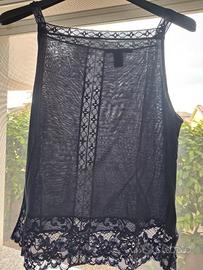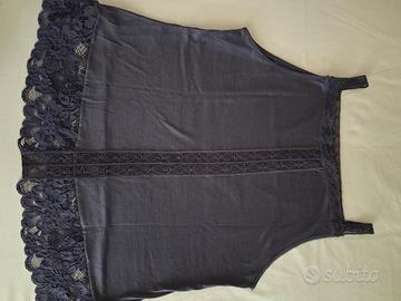 Canotta/top tutto in cotone, anche il pizzo, senza difetti, usato poco, color blu copiativo.