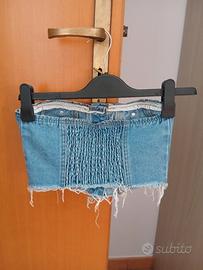 Top a corsetto in denim, modello aderente stile bustier che valorizza la silhouette. Indossato pochissime volte, praticamente come nuovo. Perfetto per creare outfit casual ma curati, da abbinare a jeans, gonne o pantaloni a vita alta. Vestibilità stretta e strutturata. Ottime condizioni.