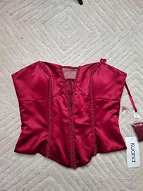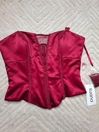 Top corsetto in raso color borgogna della marca Kuana, taglia 44.