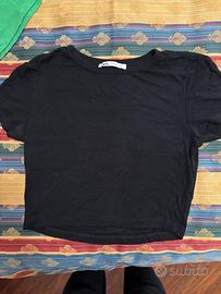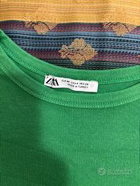 Vendo per inutilizzo 2 t-shirt corte marca Zara taglia M ma vestono una S. Una nera ed una verde al prezzo unico di 6 euro.