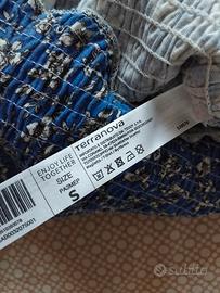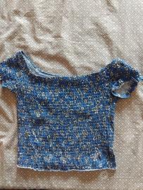 vendo top corto a maniche corte blu con fiorellini bianchi, adatto con gonne/pantaloni a vita alta. Marchio: Terranova. Taglia: S. Usato poco, vendo causa inutilizzo. 3 euro, info in privato