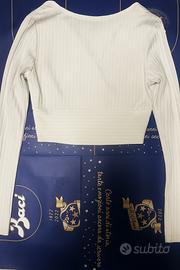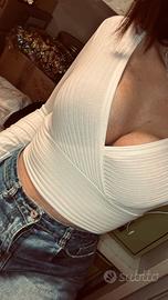 Top corto bianco a coste con scollo a V incrociato, SHEIN.