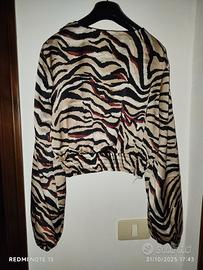 Top corto con stampa animalier, elastico nei polsini e fascia in pizzo. Mai indossato, ancora con cartellino.