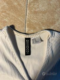 Vendo top corto H&M Divided, taglia XS, colore bianco. Modello con lacci frontali regolabili che permettono di personalizzare la lunghezza e creare un effetto arricciato super carino 🎀