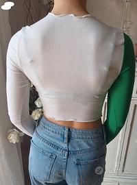 Top corto maniche lunghe bicolor SHEIN. Tessuto sottile, morbidissima, usata pochissimo, nessuna imperfezione. Segna molto bene seno e spalle!