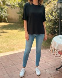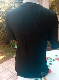 Top da Donna Gianfranco Ferré Jeans Originale - Taglia XL - Ottime Condizioni! Vendo splendido top da donna a maniche corte, a coste, colore nero, del rinomato marchio Gianfranco Ferré Jeans. Questo capo è un'autentica testimonianza di stile e qualità italiana. Nonostante sia un articolo usato, il top si presenta in ottime condizioni, conservando intatta la sua eleganza e vestibilità. Caratteristiche: * Marca: Gianfranco Ferré Jeans * Taglia: XL * Colore: Nero * Design: A coste verticali * Provenienza: Made in Italy * Condizioni: Usato in ottime condizioni Misure approssimative (come da foto): * Larghezza (da ascella ad ascella): 50 cm * Spalle: 48 cm * Lunghezza totale: 70 cm Ideale per un look casual-chic o per completare un outfit più elegante. In allegato l'immagine creata digitalmente che mostra la vestibilità del Top a Manica Corta in Maglia a Coste. Il tessuto è un morbido e confortevole knit a coste, altamente elasticizzato, tipico di capi che si adattano perfettamente alla figura. Sebbene l'etichetta non sia più leggibile, le sensazioni al tatto e la vestibilità suggeriscono una composizione che include probabilmente viscosa e/o cotone con una percentuale di elastan per garantire l'ottima elasticità e il comfort. #gianfrancoferre #gianfrancoferrejeans #topgianfrancoferre #topdonna #toptagliaxl #tagliaxldonna #gianfrancoferre #gianfrancoferrejeans #topgianfrancoferre #topfemme #toptaillexl #taillexlfemme #topgianfrancoferre #topmujer #toptallaxl #tallaxlmujer #topgianfrancoferre #damentop #topgrößexl #größexldamen