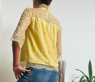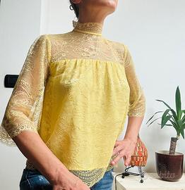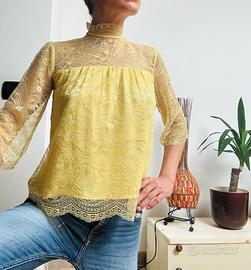 Top Day Birger et Mikkelsen taglia 34 europea (38 italiana) con pizzo, chiusura collo, maniche 3/4 in pizzo, larghe.