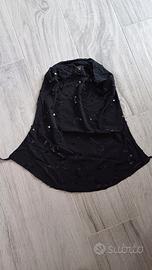 Vendo Top nero con decorazioni come da foto, da indossare con schiena scoperta e allaccio dietro la schiena. Mai indossato.