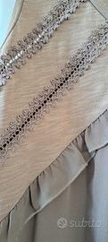 Top donna, marca Intimissimi, spalla larga, con inserti di pizzo e volant, la canotta è di cotone elasticizzato doppiata con tulle. Il colore è fango ( un verde/grigio/tortora ), ho provato a fare più foto per rendere meglio l'idea. Tg S