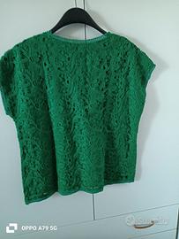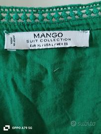 Top donna Mango in pizzo di cotone, completamente foderato, come nuovo, colore verde smeraldo, taglia XL.