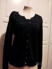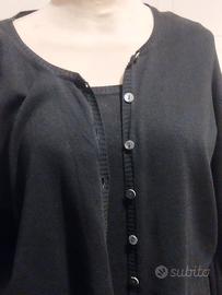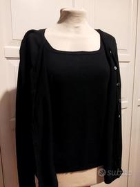 Completo primaverile nero tg.44 Frenci&Gio' Made in Italy in puro cotone, ottimo materiale..Top smanicato con scollo quadrato e cardigan con bottoncini in madreperla.Capo basic di vera qualità, molto versatile e in perfetto stato. Vendo a 9 euro.Introvabile!