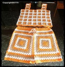 TOP E PANTALONCINO – COMPLETO ESTIVO COTONE prodotto lavorato interamente a mano ad uncinetto!