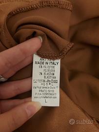 Top in tessuto satinato, colore marrone. Perfetto per un look elegante e raffinato.