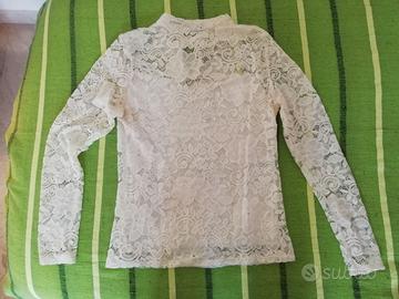 In vendita 3 capi di abbigliamento donna da indossare in occasioni formali, eleganti. La prima è una camicia bianca lavorata con dei bei motivi, taglia M. Gli altri 2 sono top smanicati neri con applicazioni color argento, taglia M. I 3 capi sono stati indossati da una ragazza alta 1,65. Possono essere venduti anche separatamente.