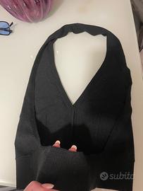 Top Elisabetta Franchi tg S, mai indossata , collo all Americana, schiena completamente scoperta , logo sul davanti su piccolo charms .