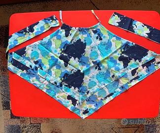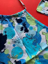 NUOVO SENZA CARTELLINO Top con taglio halter in cotone e allaccio posteriore al collo ed in vita. Tipica fantasia con le mappe geografiche firmata Alviero Martini Prima Classe nella nuance del blu. Fresco e glamour, si adatta benissimo ad un look serale, ma anche di giorno è molto bello su un pantalone blu o degli shorts. Mai indossato La taglia riportata è una S, ma potendolo allacciare veste comodamente anche una M