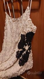 Top di Paillettes Twin Set con fiore disegno di un fiore nero sul fianco sinistro