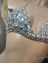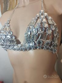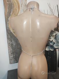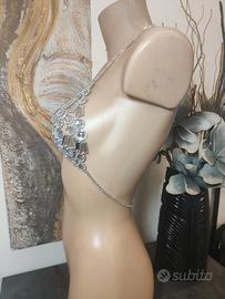 top in pietre trasparenti scintillanti geometriche con spalle scoperte con catenina taglia unica