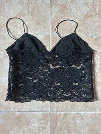 Top corto in pizzo con soalline sottili, firmato Vicolo.