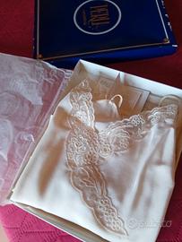 Vendo top in pura seta certificata al 100%, colore naturale, impreziosita sul davanti da pizzo Macrame'. Ampio scollo dietro. Nuova con cartellino. Bellissima. 4 misura. LA PERLA