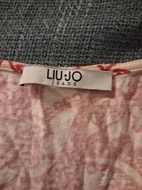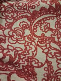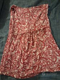 Top in viscosa liu jo, senza maniche, taglio impero, con nastrino regolabile sotto il seno, con fantasia disegno cashmere rosso su fondo panna. Larghezza da ascella ad ascella cm 36, lunghezza totale cm 60. Ottime condizioni.