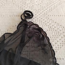 top intimo donna trasparente con ricami sul seno, elasticizzato